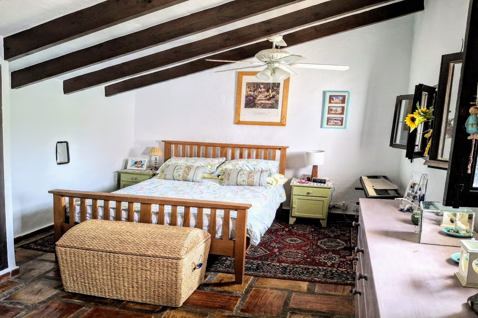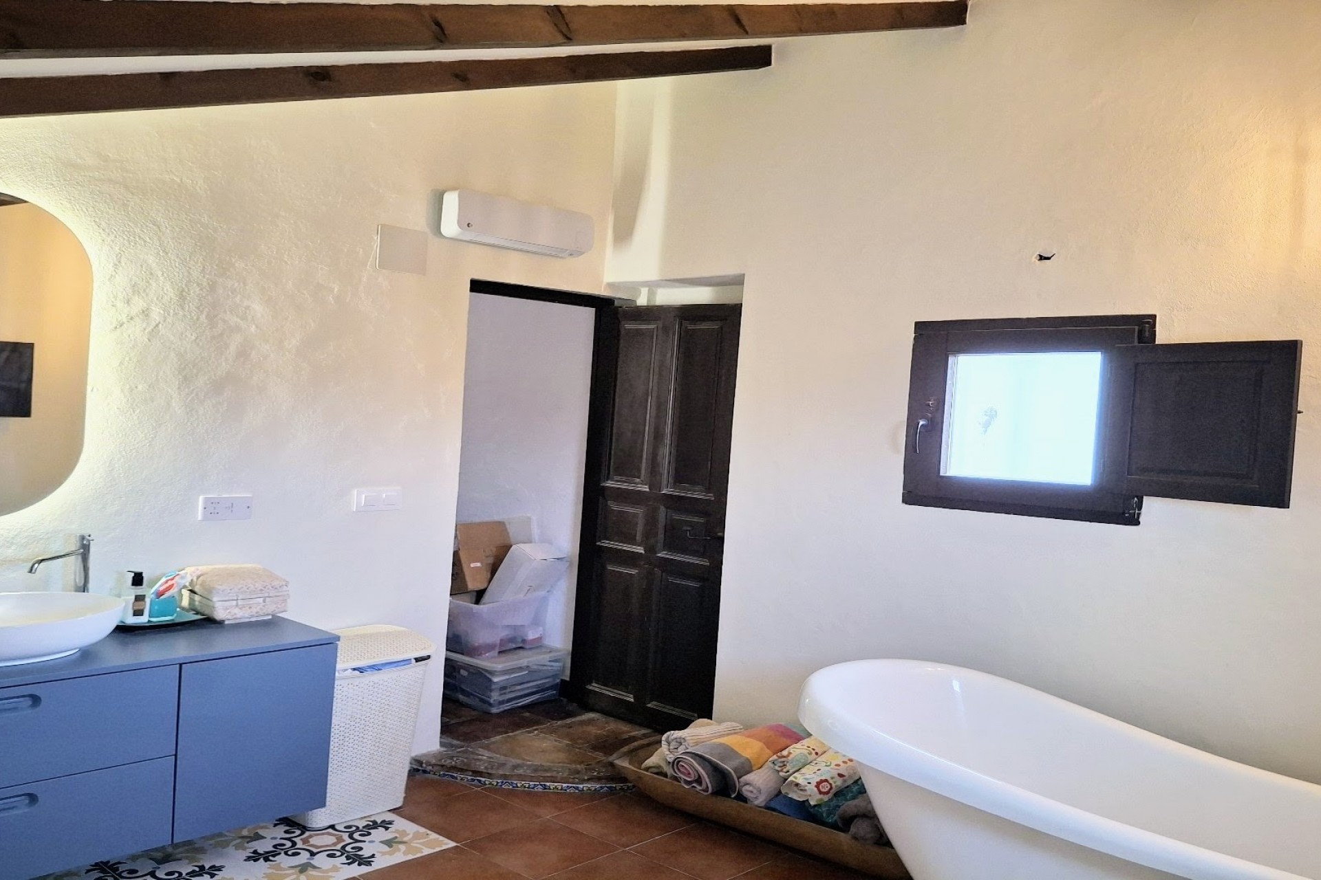 Durch ein Doppeltor gelangt man zu einer großen, geschotterten Auffahrt mit einem Carport. Die große, überdachte Naya an der Vorderseite des Anwesens verfügt über einen Abstellraum und einen Brotbackofen. Das Haus hat originale Holzbalken an der Decke und handgeschnittene Bodenfliesen im gesamten Gebäude. Wenn Sie die Finca betreten, finden Sie ein Wohnzimmer mit Holzofen, einen Essbereich neben dem Wohnzimmer und ein weiteres Wohnzimmer. Von der Einbauküche aus führt eine Tür in den Garten. Ebenfalls im Erdgeschoss befinden sich ein Duschbad und ein Doppelschlafzimmer. Eine Treppe führt vom Wohnzimmer hinauf zu einem Hauptschlafzimmer mit eigenem Duschbad und Einbauschränken, einem weiteren Doppelschlafzimmer und einem Einzelschlafzimmer. Ein großes Badezimmer mit Badewanne und begehbarer Dusche vervollständigt diese Ebene.