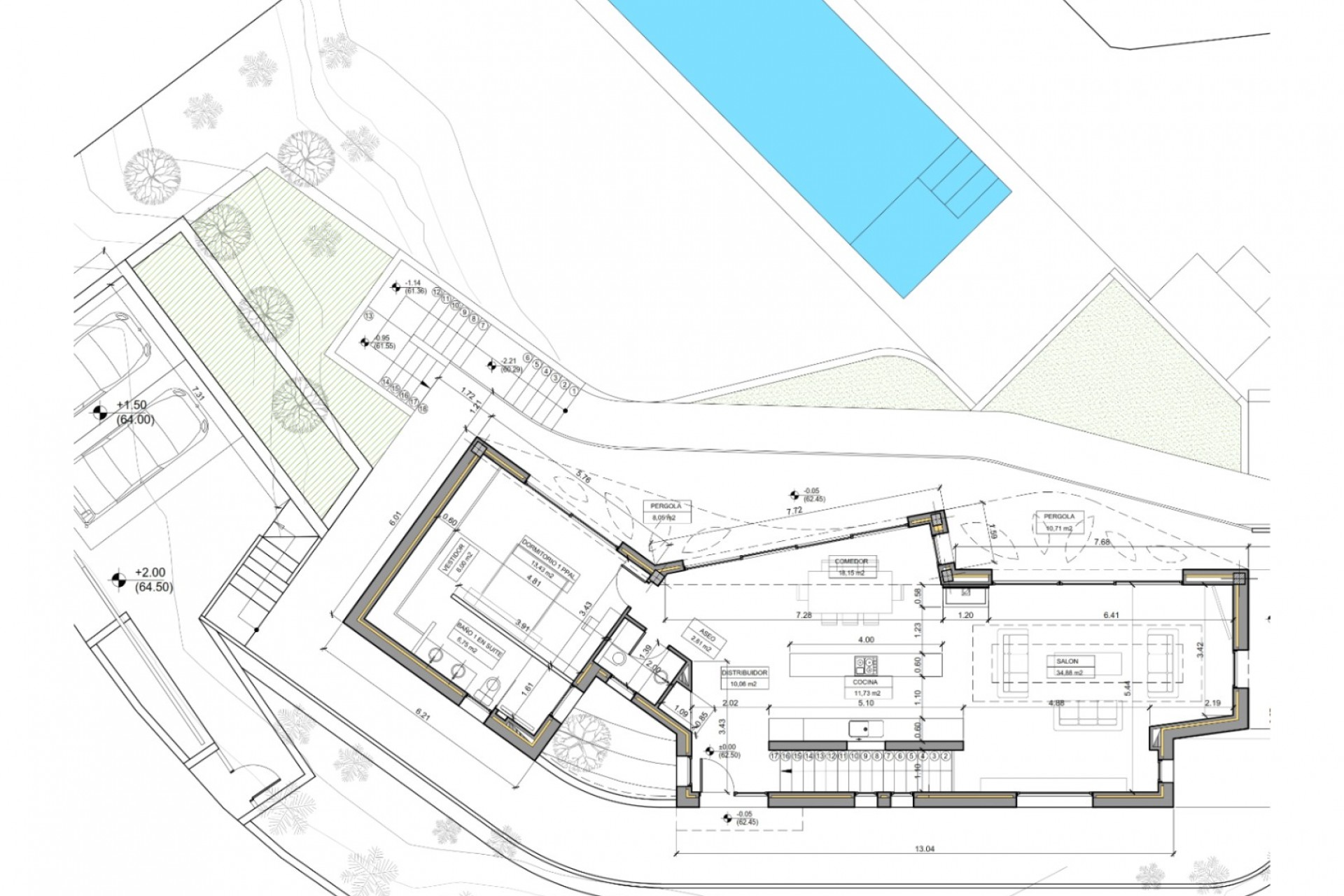 Moderne Villa im Bau in Tosalet 5, Jávea, mit Meerblick. Hauptgeschoss: Wohn-/Esszimmer, offene Küche, Gästetoilette, Hauptsuite mit eigenem Bad. Gartengeschoss: zwei Schlafzimmer, Badezimmer, Waschküche, Multifunktionsraum für Büro/Fitnessraum/viertes Schlafzimmer. Außenbereich: überdachte Terrasse mit Grill, Sonnenterrasse, privater Pool. Parkplatz: Doppelcarport mit elektrischem Tor. Hochwertige Küchenapparate, Luftwärmepumpe mit Solarenergie, Klimaanlage im gesamten Gebäude. Eingezäuntes Grundstück mit mediterraner Landschaftsgestaltung.