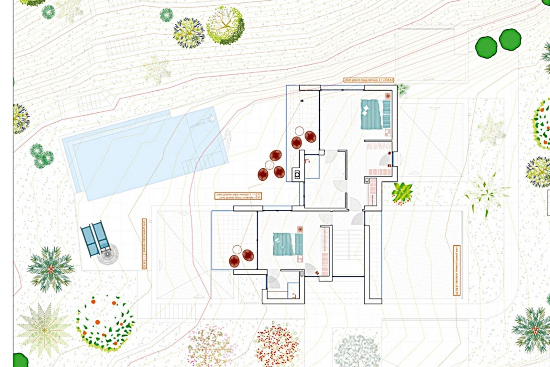 Das Projekt sieht eine Villa mit vier Schlafzimmern und drei Badezimmern vor, die sich über drei Etagen erstreckt und einen offenen Wohnbereich, einen Hauswirtschaftsraum, einen Fitnessraum, eine Grillterrasse, einen Infinity-Pool und eine Doppelgarage umfasst. Die Genehmigung wurde vom Rathaus erteilt, so dass Sie sofort mit den Arbeiten beginnen können.