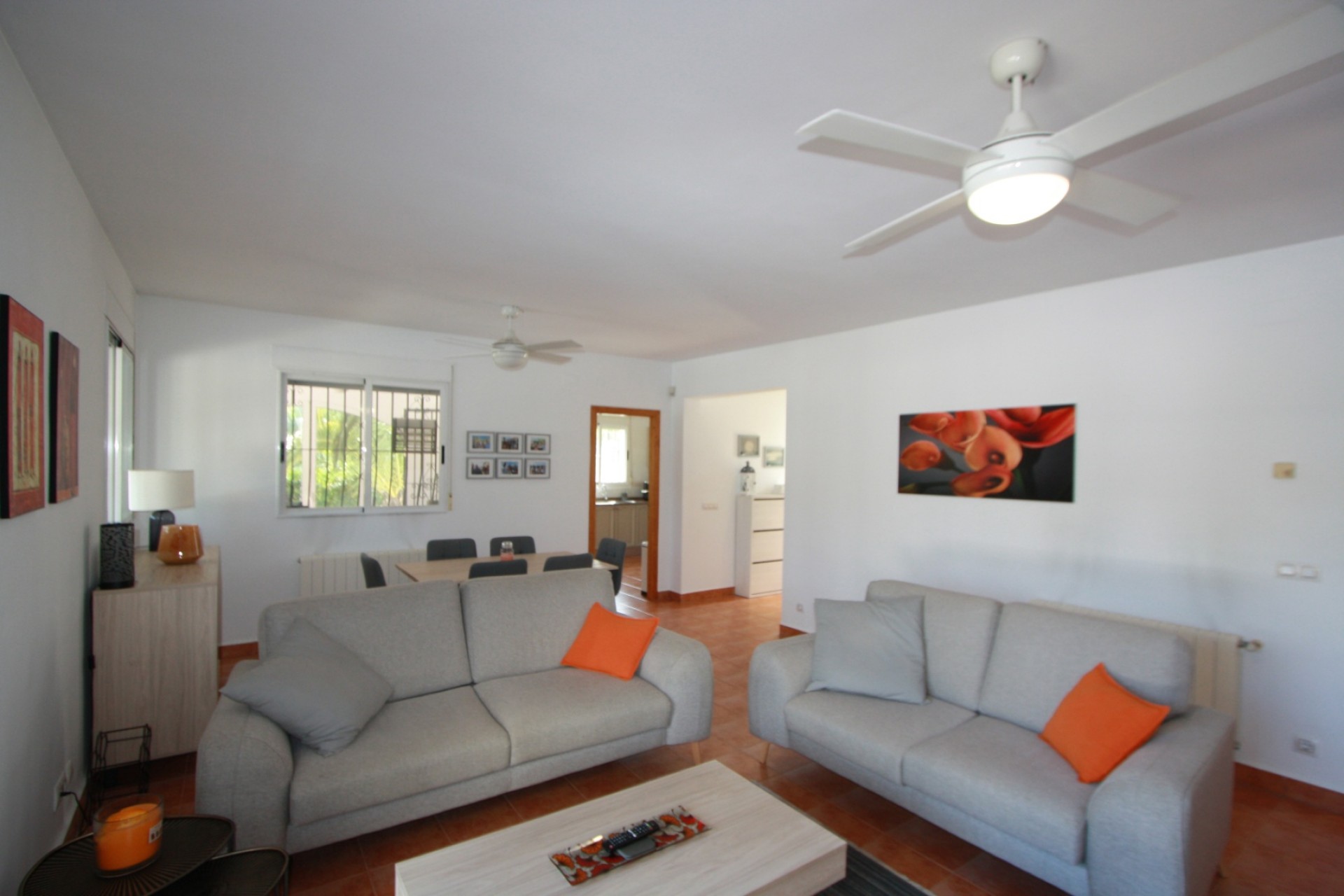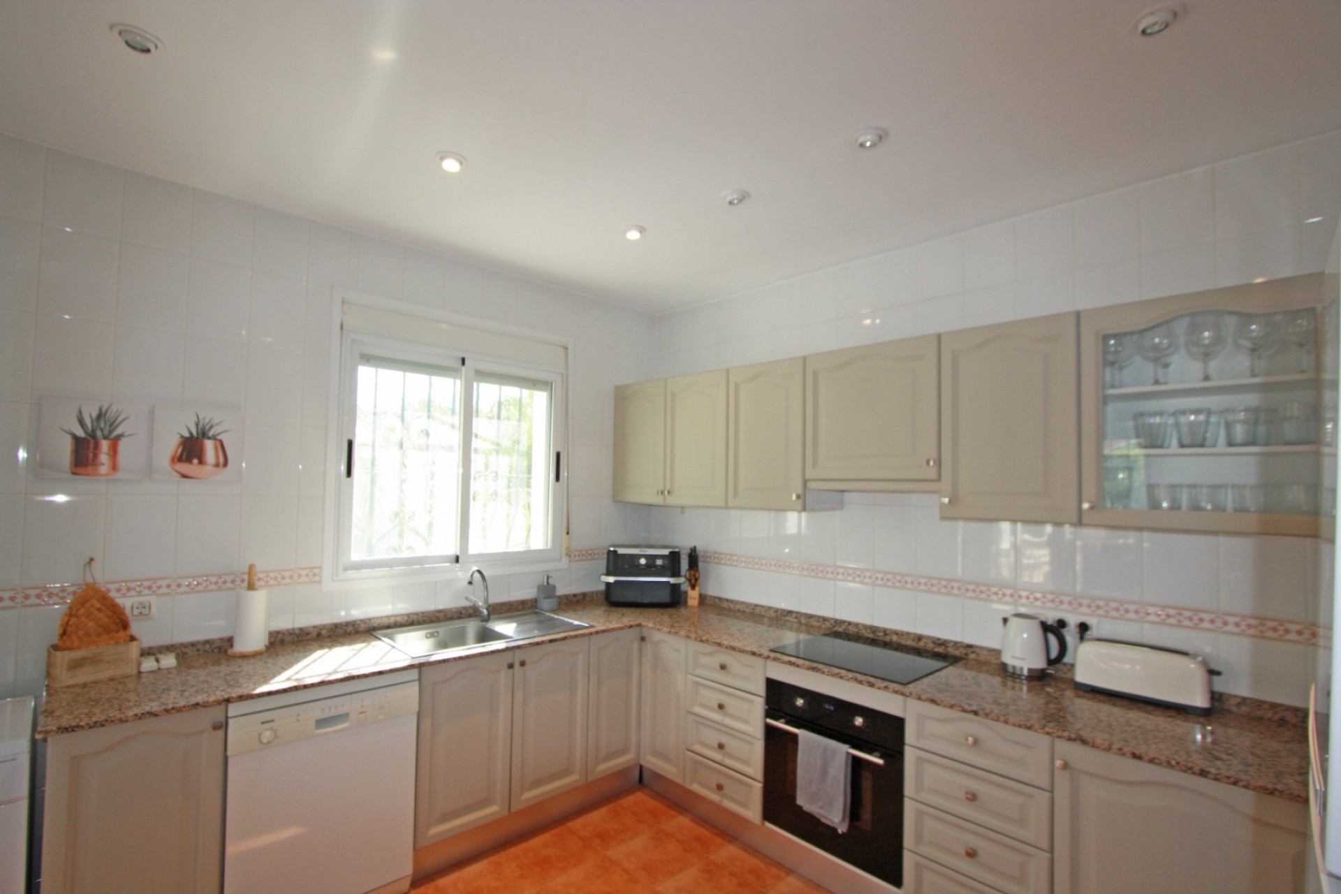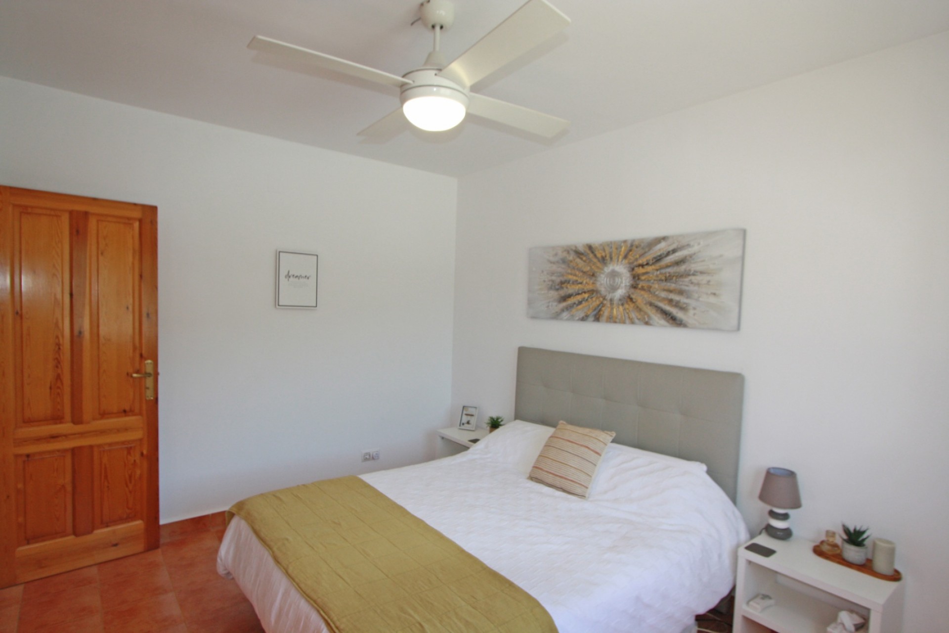 Geräumige Villa mit 3 Schlafzimmern zum Verkauf, weniger als 10 Gehminuten vom charmanten Dorf Jalón entfernt, bietet Privatsphäre und beeindruckende Ausblicke sowie eine unschlagbare Lage. Sie befindet sich auf einem flachen, völlig eingezäunten Grundstück in einer ruhigen und begehrten Wohngegend und kombiniert die Ruhe des Landes mit der Bequemlichkeit, nur einen kurzen Spaziergang vom schönen Dorfzentrum entfernt zu sein. Die Villa ist makellos gepflegt und geschmackvoll dekoriert und bezugsfertig. Die Immobilie ist auf einer einzigen Ebene angelegt, was den Zugang erleichtert. Ein großzügiger Eingangsweg bietet ausreichend Parkmöglichkeiten für mehrere Autos und ein Wohnmobil. Die Villa ist verteilt auf ein geräumiges und helles Wohnzimmer mit Essbereich, das über Doppeltüren zu einer Naya und zum Pool führt und eine warme, einladende Atmosphäre schafft, eine großzügige, ausgestattete Küche, die ebenfalls zur Naya führt und ideal ist, um im Freien zu essen und zu genießen, drei geräumige Doppelzimmer, alle mit Einbauschränken, das Hauptschlafzimmer verfügt über ein eigenes Bad mit Badewanne und Dusche und hat direkten Zugang zur Naya und zum Poolbereich. Das Familienbad und das ensuite-Bad wurden in den letzten Jahren wunderschön renoviert. Der Außenbereich ist sorgfältig gestaltet mit reifen mediterranen Pflanzen und Obstbäumen. Ein privater Pool von 8x4 m steht im Mittelpunkt; es gibt eine Garage (derzeit als Abstellraum genutzt, mit Potenzial zur Umwandlung in ein Büro oder Atelier), einen zusätzlichen Abstellraum hinter der Garage, einen zusätzlichen Raum mit Sanitäranschlüssen und Spüle, der als Waschküche genutzt werden könnte, und eine große Überdachung an der Vorderseite der Immobilie. Zusätzliche Merkmale: Klimaanlage in allen Zimmern. Zentralheizung mit neu installierter Vaillant-Gasheizung. Pool mit kürzlich renovierten Fliesen. Doppeltverglasung. Großzügige Abstellräume. Pflegeleichter Garten. Das Dorf Jalón (oder Xaló), bekannt als die Hauptstadt des Valle del Pop, ist von lokalen Traditionen durchdrungen und genießt ein einzigartiges Mikroklima. Das Dorf bietet alle notwendigen Dienstleistungen wie Supermärkte, Geschäfte, Banken, ein medizinisches Zentrum, Schulen und eine große Auswahl an Cafés und Restaurants. Die beeindruckenden Strände der Costa Blanca sind nur 20 Autominuten entfernt, während die Flughäfen Alicante und Valencia etwa eine Stunde entfernt sind. Diese außergewöhnliche Immobilie eignet sich perfekt als Familien- oder Ferienhaus mit einem ausgezeichneten Mietpotenzial. Ein Besuch wird empfohlen; Immobilien dieser Qualität und Lage sind selten lange auf dem Markt. Kontaktieren Sie uns noch heute, um einen Besichtigungstermin zu vereinbaren!