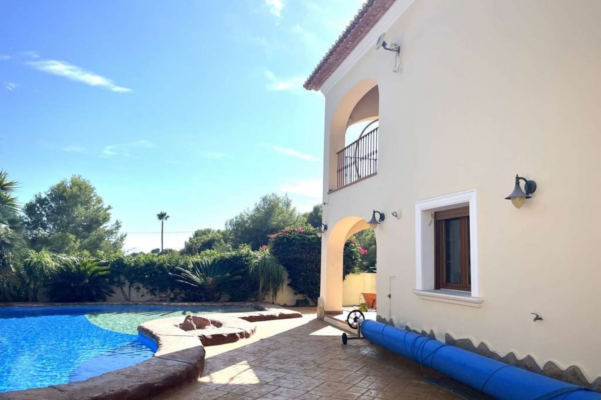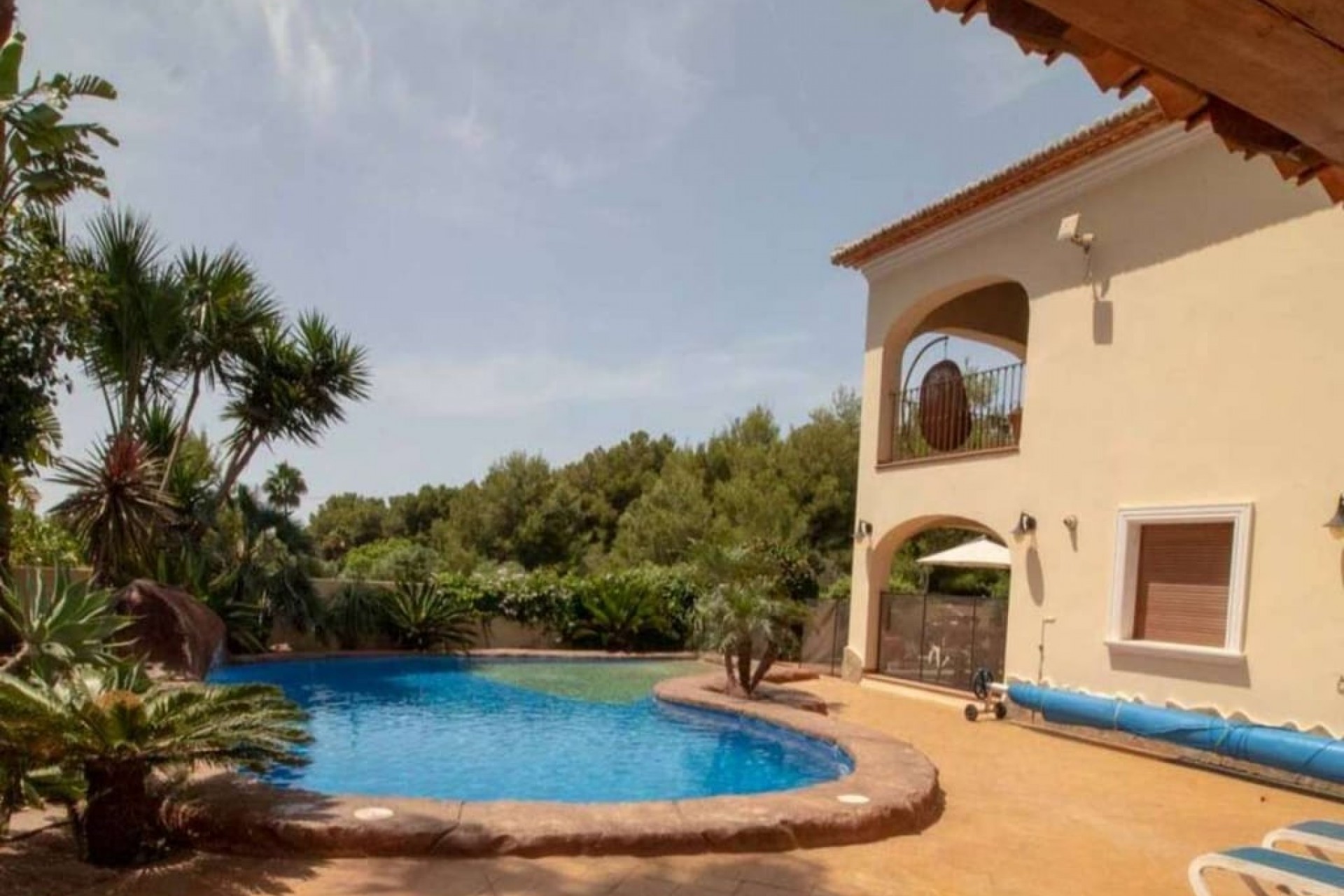Située dans le quartier tranquille de L'Arnella/El Portet, à quelques pas des plages immaculées et de la ville animée de Moraira, cette superbe villa offre un mélange parfait de luxe et de commodité. Répartie sur trois niveaux, cette maison spacieuse dispose d'un luxueux salon avec une cheminée à bois, d'une salle à manger séparée et d'une terrasse couverte idéale pour les repas en plein air et la détente. La suite parentale est dotée d'armoires encastrées de grande qualité, d'une douche à l'italienne et d'une retraite privée. Descendez au niveau inférieur pour découvrir un espace de divertissement polyvalent, comprenant un bar, une terrasse couverte, un espace piscine, un garage intérieur et de nombreux espaces de rangement. Une salle de cinéma privée et une table de billard vous permettront de vous amuser pendant des heures. L'espace extérieur est tout aussi impressionnant, avec une piscine chauffée de 11x5 avec une cascade, un filet de sécurité pour les enfants et un jardin magnifiquement aménagé avec des arbres fruitiers et des oliviers. Avec le chauffage central au gaz et la climatisation, cette spacieuse villa est le choix idéal pour les familles ou ceux qui recherchent un mode de vie confortable et pratique. Ne manquez pas cette opportunité de faire de votre rêve méditerranéen une réalité. Contactez-nous dès aujourd'hui pour planifier une visite.