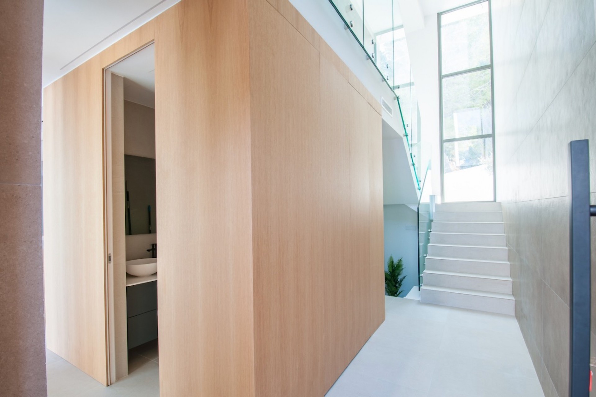 Nieuwbouwvilla te koop in de rustige wijk van Benimeit, Moraira. Deze moderne villa bevindt zich in de uithoek van Benimeit tussen andere nieuwbouwvilla's die even als deze genieten van straatverlichting, voetpaden, etc. Op 5 minuten in de auto bereiken we het centrum en strand van Moraira. Betreedt deze magnifieke villa via de dubbele garage! Op dit niveau vindt men ook een gym, wasruimte en opslagruimte. Neem de trap naar boven en geniet van een mooie volledig uitgeruste keuken die uitgeeft naar de woon-eetkamer. Op dit verdiep vinden we ook 1 ruime slaapkamer met ensuite badkamer en een apart gastentoilet-badkamer. Stap naar buiten en geniet van een prachtige tuin, privé zwembad en overdekte buitenkeuken. Terug binnen nemen we de riante trap naar het hoogste niveau waar zich nog 3 slaapkamers en 2 badkamers bevinden. De masterbedroom heeft een grote inloopkast en een ensuite badkamer. Een gedeeld terras voor de drie kamers boven kan niet ontbreken!De woning is gemeubileerd en heeft verwarming via radiatoren of vloerverwarming en airconditioning warm en koud. Warm water wordt geleverd via een accumulator. Deze villa is nu klaar, boek nu snel uw afspraak voor een bezichtiging!