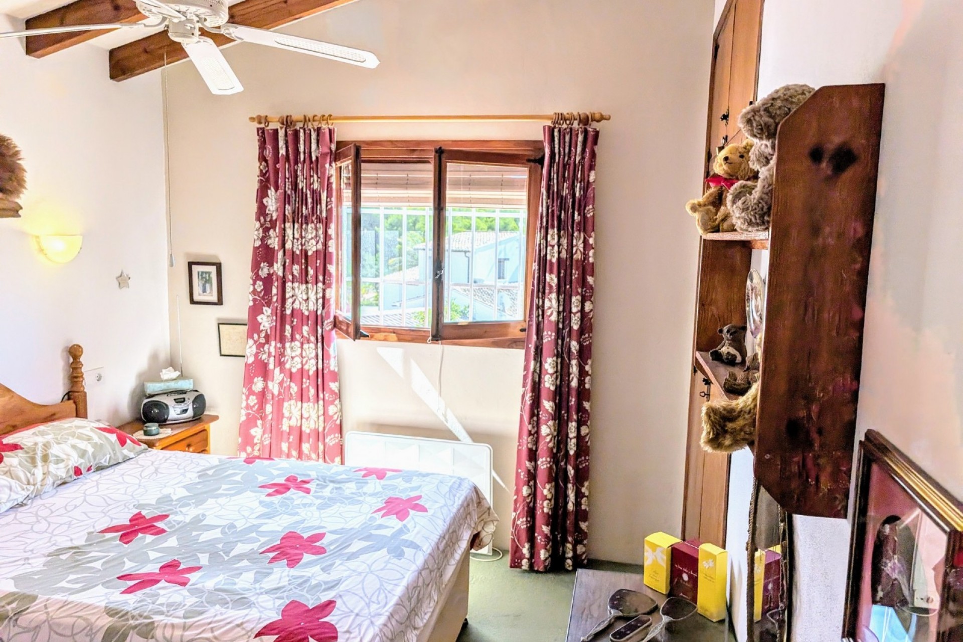 De mooie, gezellige villa met prachtig uitzicht over de vallei naar de zee ligt in La Sabatera, op loopafstand van een klein winkelcentrum en slechts een klein eindje rijden naar het strand, het stadscentrum en alle voorzieningen. De villa is gelijkvloers en ligt in een rustige doodlopende straat. Je komt aan bij het huis, parkeert in de carport en gaat dan een paar treden af naar de voortuin. Je komt de villa binnen via glazen schuifdeuren in een eetkamer en vervolgens in de kleine maar goed ingerichte en uitgeruste keuken met granieten wokbladen. Via een boog kom je in de woonkamer met een hoek open haard en houtkachel, via een andere boog kom je in een kleine hal. Aan de linkerkant is een tweepersoonsslaapkamer met ingebouwde kasten, rechtdoor is de badkamer van het huis met een badmeubel en een bad met douchebevestiging, aan het einde van deze badkamer is een bijkeuken. Aan de rechterkant is de ouderslaapkamer met ingebouwde kasten en een en-suite badkamer met kleedruimte, badmeubel, verwarmd handdoekenrek en een inloopdouche. Via een deur in de woonkamer kom je in de glazen naya, een kamer op het zuiden met prachtig uitzicht over het uitgestrekte terras en de zee. Via vijf treden naar beneden kom je op het terras van ongeveer 180m2, genoeg ruimte om buiten te eten, te zonnebaden, te ontspannen en de hele dag van de zon te genieten. Het zou mogelijk kunnen zijn om een zwembad of bubbelbad te hebben, maar dit moet worden bevestigd door de planningsafdeling van het gemeentehuis. Aan de linkerkant van de villa staat een grote houten schuur/werkplaats en daarachter is een barbecueterras met granieten tafel en werkblad. Hier vind je ook een bijkeuken met een boiler en een wasmachine. De tuin heeft een verscheidenheid aan volwassen planten en bomen, waaronder een Jacaranda, een flessenborstel en twee prachtige Hibiscussen.