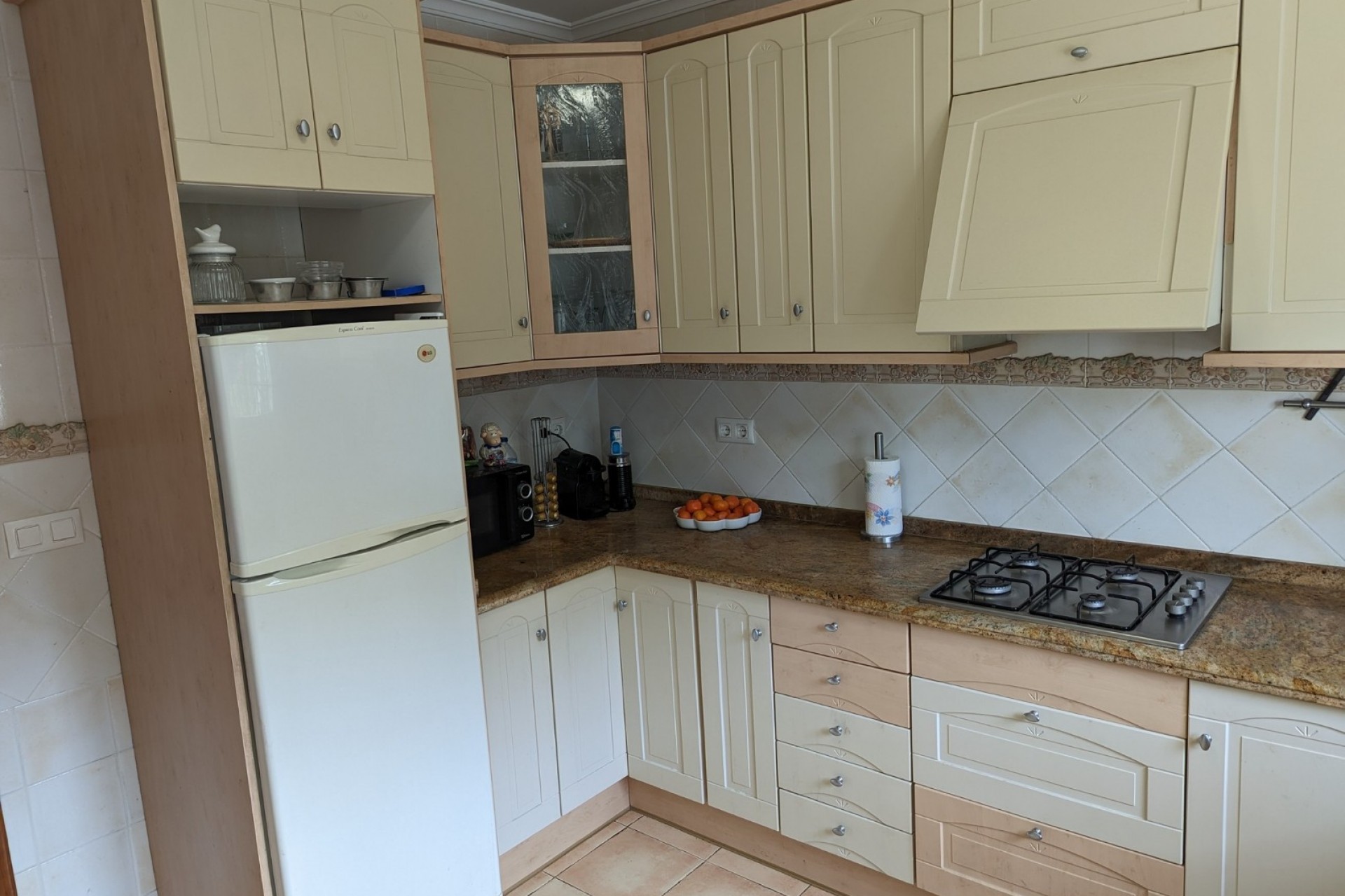 This spacious villa is located in a quiet part of Golden Valley, just a short drive to the beach, shops and town centre. The villa is distributed over two separate floors and situated on a plot with two levels. You enter the property into a parking area for 2-3 cars with a carport for 1 car. You enter the villa through an entrance porch and then into a wide hallway. On the left is the spacious master bedroom with built-in wardrobes and an en-suite shower room. Further down the hall is the separate kitchen which has been fitted with cream units and golden granite worktops and includes oven, gas hob, extractor fan, dishwasher and fridge/freezer. Next to the kitchen are the arches that lead to the dining room and living room. The living room is bathed in light and includes a feature fireplace with an electric fire and a glazed door leading out to the naya. There is a large arch between the living room and dining room. Further down the hallway there is a house shower room and then the second double bedroom, another good size room with built-in wardrobes and an en-suite bathroom with bath including shower attachment. The glazed naya is a great place to eat or relax with wonderful valley and mountain views and also the benefit of beautiful sunsets behind the Sierra Bernia mountains. Next to the naya is an open terrace with views all the way to the Montgo, another nice place to read a book or enjoy a drink. Access to the large lower terrace is by an external staircase from the naya or by another external staircase from the carport. The private pool area has an open naya, ideal to grab some shade when the sun is hot and perfect for a summer kitchen. Outside the guest apartment there is a semi-circular open naya and you enter into a good size kitchenette. To the right there is a large living room, big enough to be used as a studio with a sofa bed if necessary. Off the kitchenette there is a large shower room with a walk-in shower and a double bedroom with a wardrobe. Off the far end of the terrace there is a utility room. Next to the pool area there is a large rockery and to the left of the villa entrance there is a garden area with fruit trees.