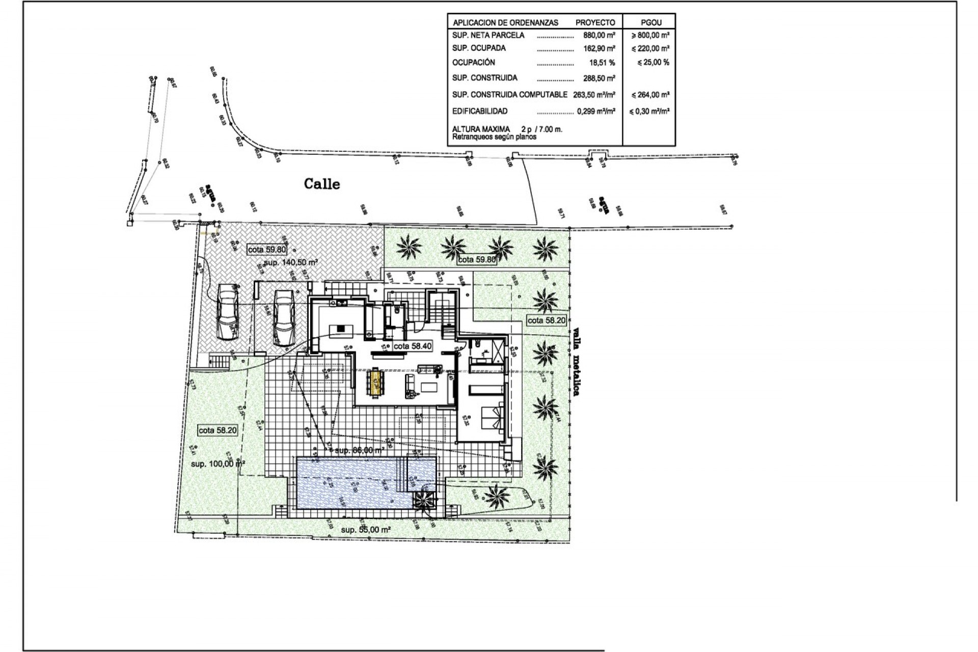 Distributed over 2 floors, this villa offers on the top floor (125.60m2) 3 bedrooms with ensuite bathrooms, each bedroom has access to the terrace. The main floor (148.90m2) houses the master bedroom with ensuite bathroom and dressing room, a courtesy bathroom, laundry / storage room, kitchen with island and spacious living room. The kitchen, living room and bedroom give access to the terrace with the pool. The villa will be equipped with all the comfort and luxury, finished with the best qualities. There is a garage and on the plot there is parking for 2 more cars.