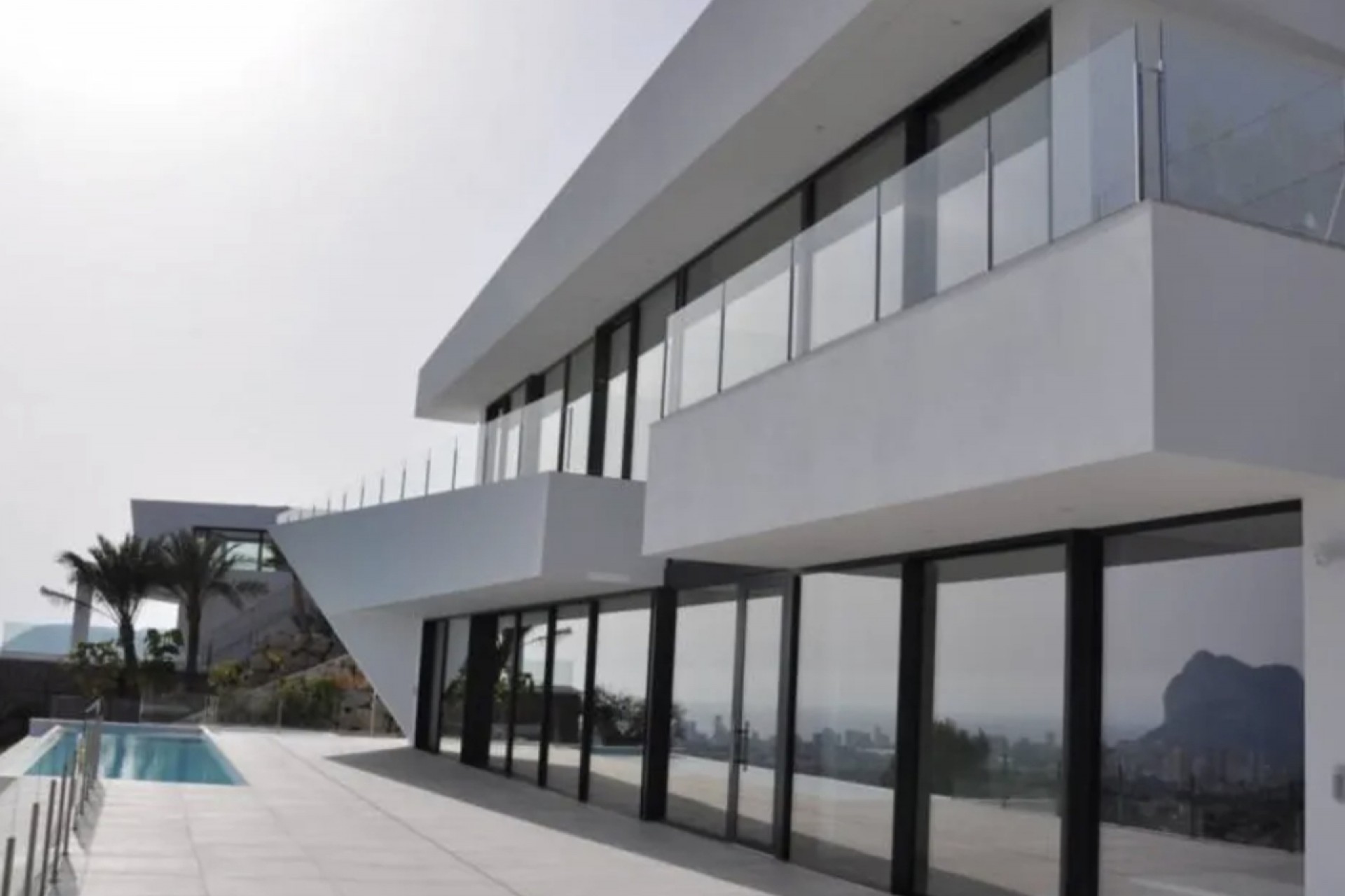 We are pleased to be offering this key ready modern villa that is finished to a high standard with panoramic views to the Mediterranean Sea. The villa is 560m² build, this villa consists of living/dining room, fully equipped kitchen with Meile electrical appliances, 4 bedrooms and 5 bathrooms. Elevator (4pers) from the basement to the first floor (3 stops). Underfloor heating and air conditioning via ducts. Floor-to-ceiling doors and windows with aluminium profiles and double glazing, security and sun protected glass. This property has a large infinity pool of 15,3m x 4m (51,45m²) with a spacious open terrace of 130m² and covered of 47,4m². Mediterranean garden with automatic irrigation system. Located at one of the most sought after locations due to its outstanding sea views and orientation, and proximity to Calpe. The property also benefit from a large under build that you can have as a gym or games room.