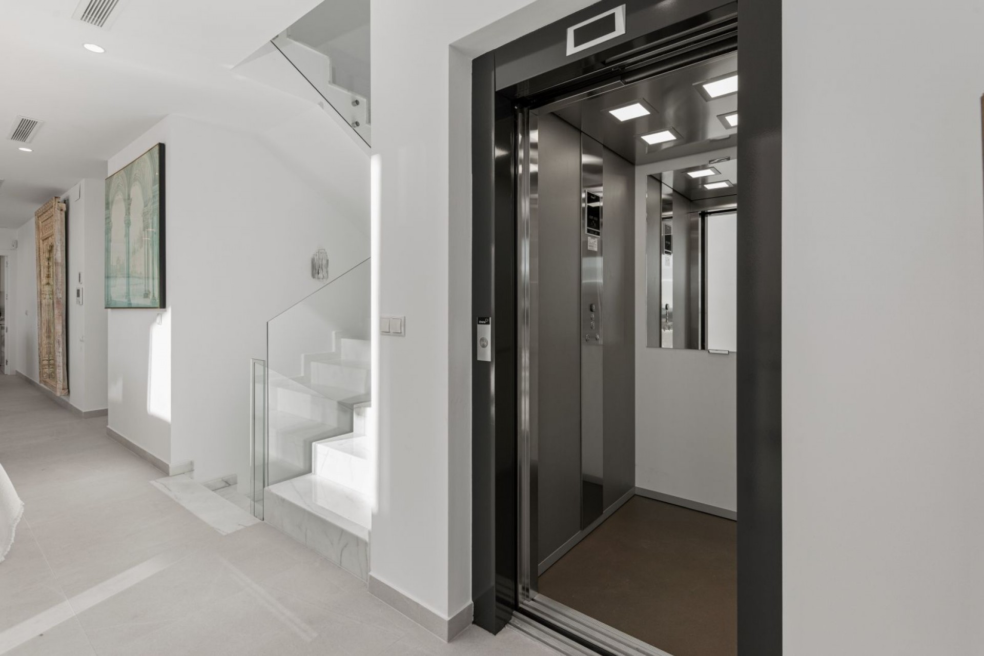 The villa is distributed over three floors, all connected by an internal staircase and elevator.